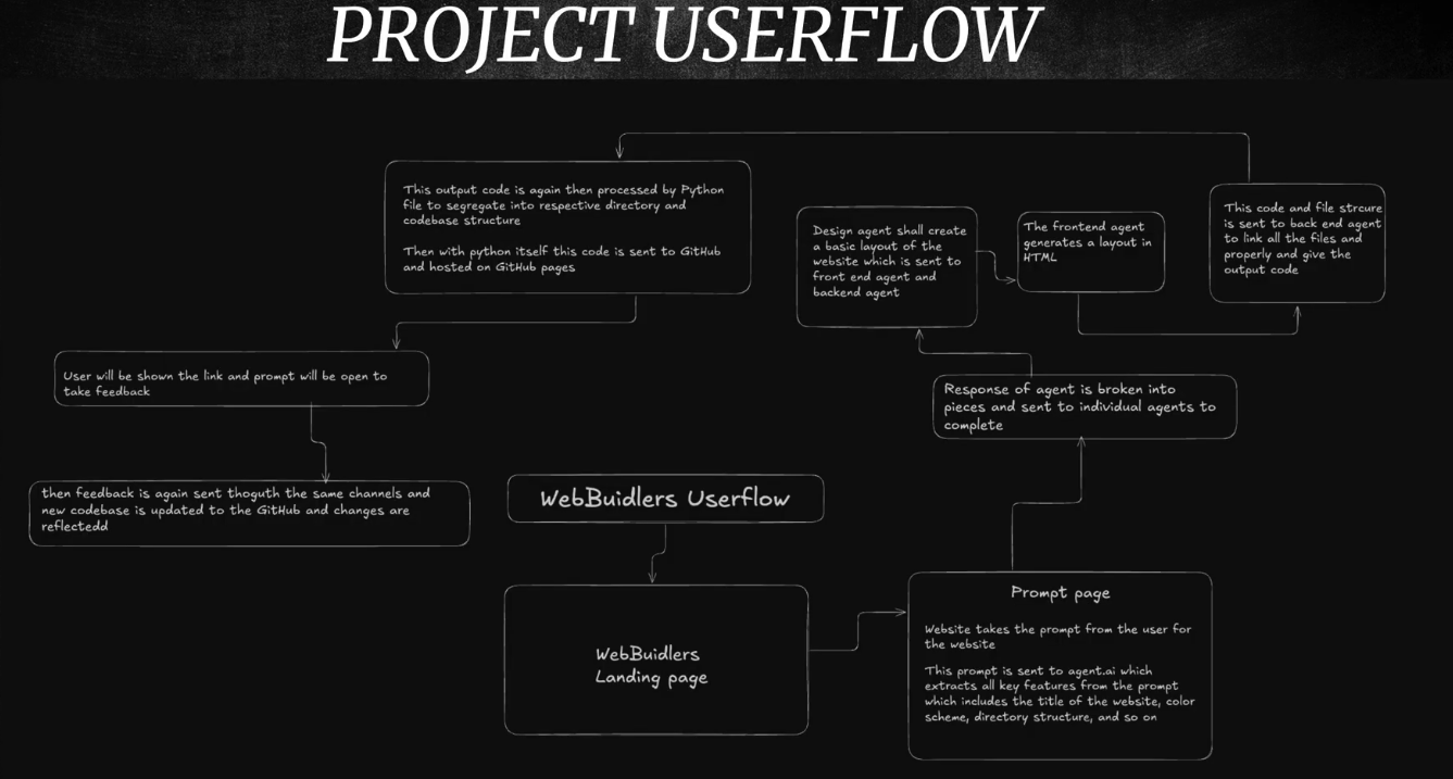 AI tool that scaffolds a full site from a prompt, pushes to GitHub, and supports iterative edits.